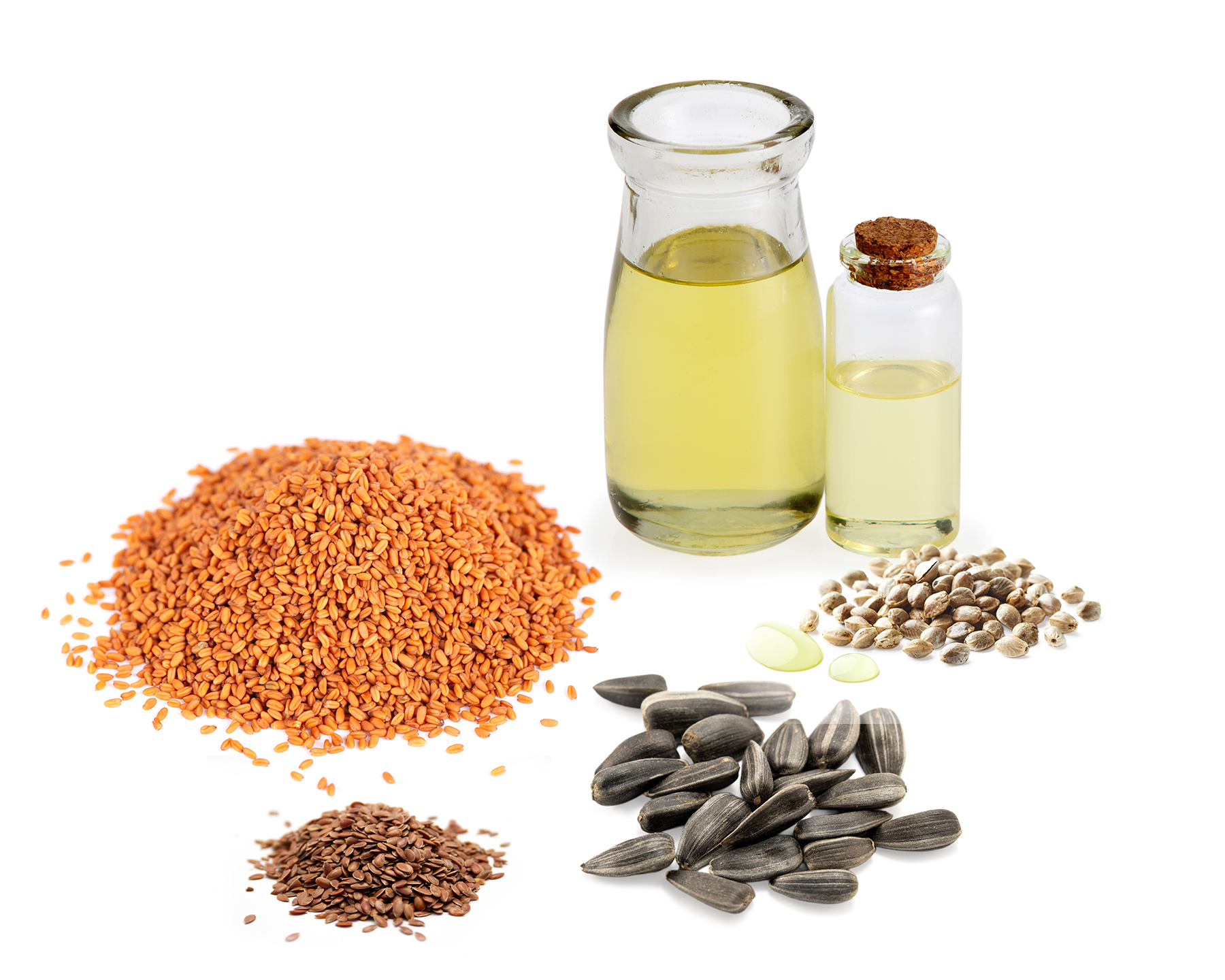 Les huiles végétales, comme celles de lin, de caméline, de chanvre ou de tournesol, contiennent des acides gras essentiels que l’organisme ne peut pas produire seul.